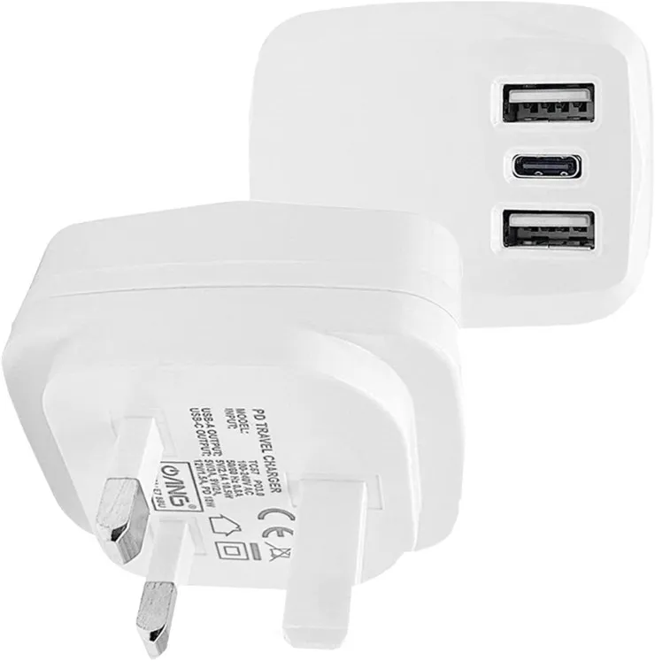 Dual USB Charger Wall Plug 10.5W PD 3.0 Fast Charging UK Adapter