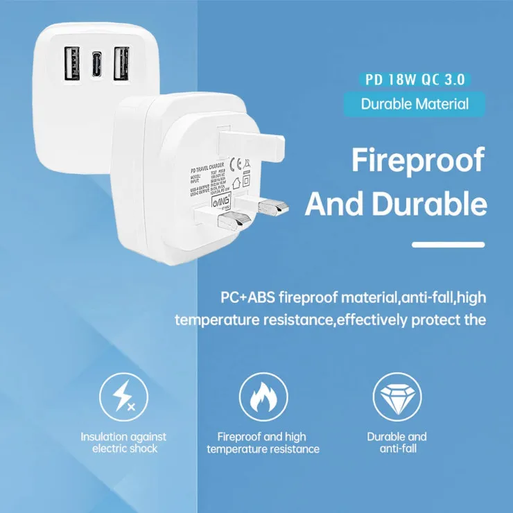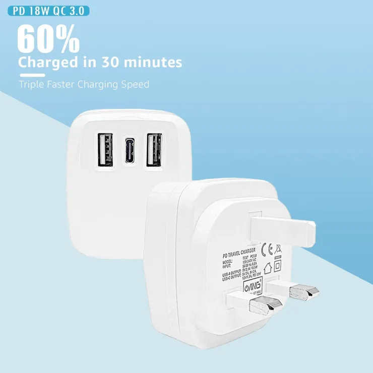 Type C Charger PD 18W Fast Type-C With Dual USB Ports Adapter