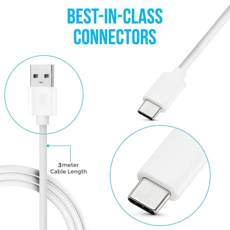 | Type | Charging Cable | Compatible Brand | Universal, For Apple, For OnePlus, For Samsung | Compatible Model | Universal | Colour | White | Material | ABS Plastic | Cable Length | 3M | Connectivity | USB-C | Items Included | Charging & Data Sync Cable | Feature | Fast Charge, High Quality, Flexible, Heavy Duty | Package Includes | 1x Type-C Charging Cable | Warranty | 60 Days |