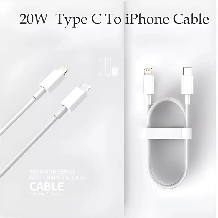 | Compatible Brand | For Apple, For Samsung, Universal | Compatible Models | For Apple AirPods (2nd Generation), For Apple AirPods Pro, For Apple iPhone (1st Generation), For Apple iPhone 11, For Apple iPhone 11 Pro, For Apple iPhone 11 Pro Max, For Apple iPhone 12, For Apple iPhone 12 Pro, For Apple iPhone 12 Pro Max, For Apple iPhone 13, For Apple iPhone 13 Pro, For Apple iPhone 13 Pro Max, For Apple iPhone 13 mini, For Apple iPhone 14, For Apple iPhone 14 Plus, For Apple iPhone 14 Pro, For Apple iPhone 14 Pro Max, For Apple iPhone 15, For Apple iPhone 15 Plus, For Apple iPhone 15 Pro, For Apple iPhone 15 Pro Max, For Apple iPhone 16, For Apple iPhone 16 Plus, For Apple iPhone 16 Pro, For Apple iPhone 16 Pro Max, For Apple iPhone X, For Apple iPhone XR, For Apple iPhone XS, For Apple iPhone XS Max | Features | Anti-Fingerprint, Data Sync, Easy To Carry, Easy To Use, Fast Charge, Flexible, Glossy, Heavy Duty, Lightweight, Shockproof | Type | USB C To iPhone Cable | Color | White | Material | ABS Plastic | Cable Length | 30cm | Connectivity | 8 Pin, USB-C | Manufacturer Warranty | 50 Days | Package Includes | 1X 20W Fast Charging Cable |
