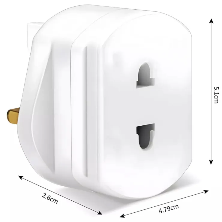 • Universal Adapter Converts 2-pin EU plugs to 3-pin UK plugs.