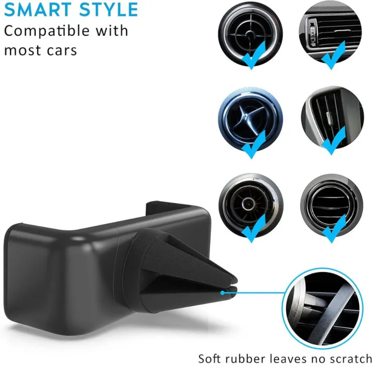 Experience hands-free convenience with the Universal 360° Car Air Vent Phone Holder, a compact and dependable solution for securely holding your smartphone while you drive. Designed for functionality and minimalism, this mini mobile mount offers a snug fit into most horizontal and vertical air vents without obstructing your view or dashboard layout. Whether you're navigating, answering calls, or streaming music, this holder makes driving safer and more efficient.