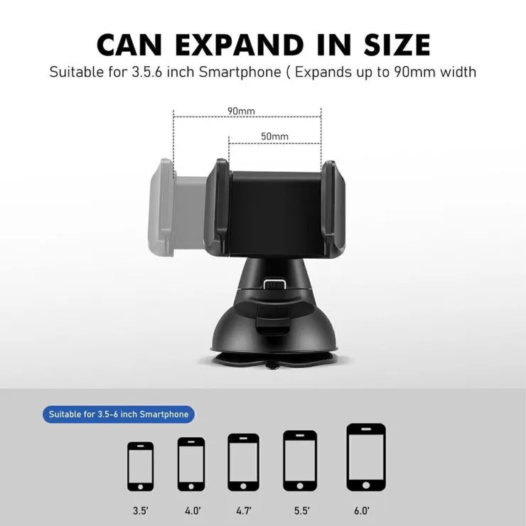 | Compatible Model | Universal | Colour | Black | Features | Accessible Controls, Adjustable Angle, Anti-Scratch, Flexible, Holder, Non-Slip, Reusable, With Clip, 360 Degree rotating, Holder Dashboard Suction, Lightweight, Shockproof, 100% Secure, Easy To Use, Anti-Slip | Package Includes | 1x | Type | Phone Holder | Material | ABS plastic | Design/Finish | Glossy |
