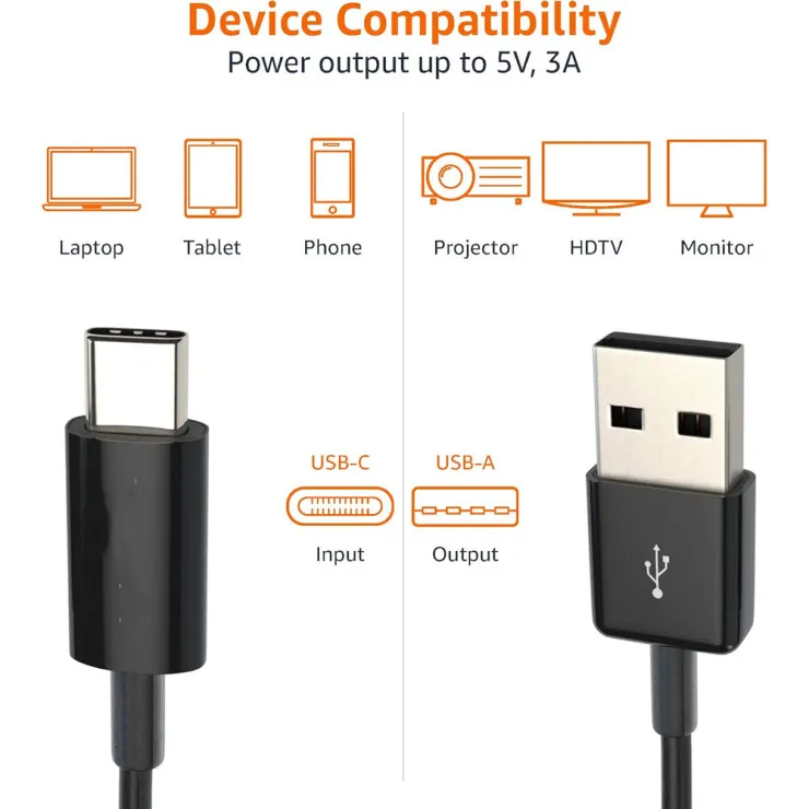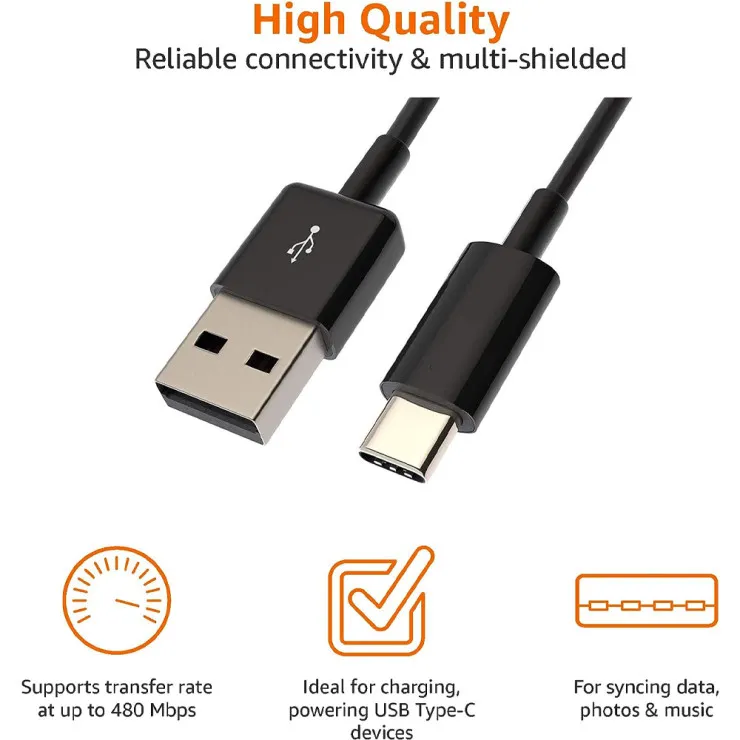 | Compatible Models | Universal, For Samsung, For Apple, For LG, For HTC | Features | High Quality, 100% Brand New, Easy To Carry, Easy To Use, Professional Design, Accessible Controls, Adjustable Angle, Anti-Fingerprint, Antimicrobial, Anti-Scratch, Lightweight | Connector Gender | Male-to-Male | Connector A | Type USB-C | Connector B | USB 2.0 male | Color | Black | Cable Length | 9 feet (3M) | Manufacturer Warranty | 60 Days | Type | USB-C to USB 2.0 Charge and Sync Cable | Package Includes | 1 X USB Type-C Cable |
