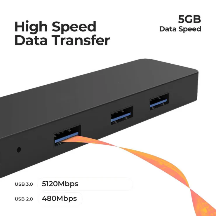 Benefit from lightning-fast data transfer speeds with USB 3.0 technology, delivering up to 5Gbps, ten times faster than USB 2.0. Effortlessly transfer large files, stream HD videos, or back up data in no time.