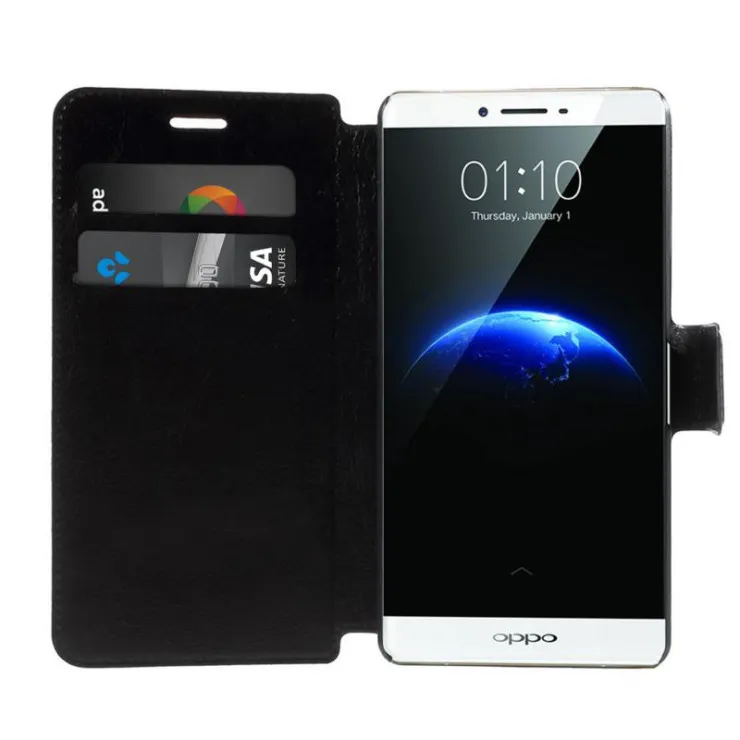 Durable Black Leather Wallet Case for Oppo R7 2015 with Card Slot