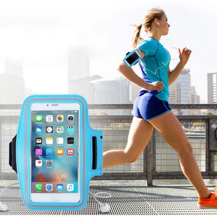 Sporting a vibrant sky-blue color, this armband combines functionality with style. The sleek, modern design makes it a fashionable accessory that complements your active lifestyle. Stand out during your runs, gym sessions, or outdoor adventures with this eye-catching and sporty armband.