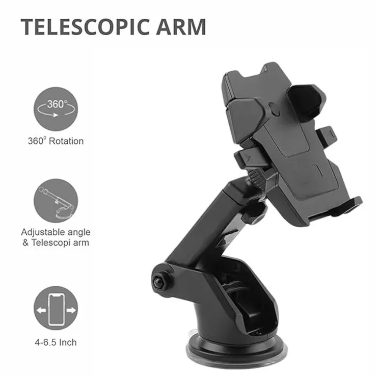 Keep your phone within easy reach and perfectly positioned while driving with the Universal 360° Windshield Mount Car Mobile Holder Cradle. Designed with an extended long neck and robust suction cup, this car holder ensures your iPhone, Samsung, or any compatible smartphone stays firmly in place while you navigate, take hands-free calls, or stream music.