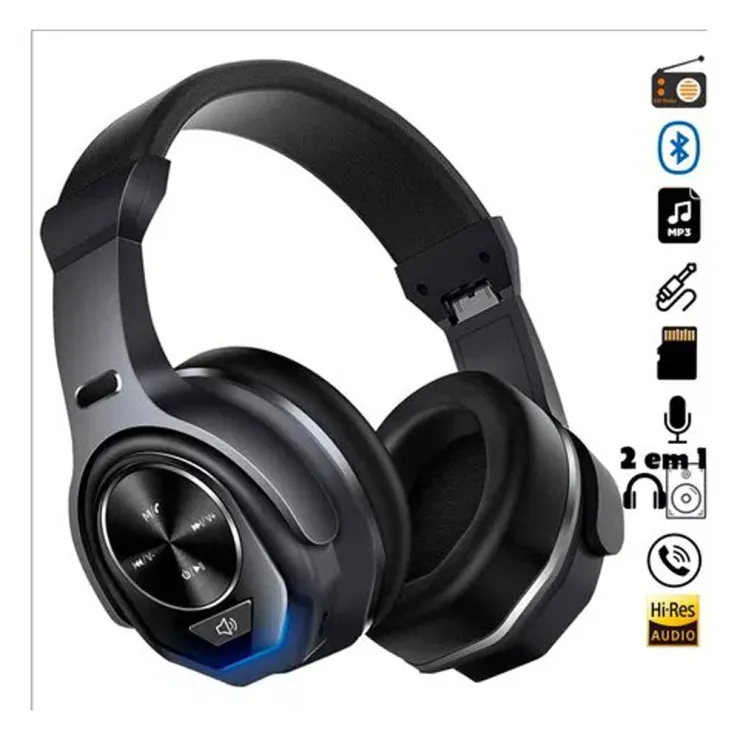 | Connectivity | 3.5mm Jack, Bluetooth | Microphone Type | Built-In | Color | Black | Warrenty | 30 days | Package included | 1x Headphone | Compatible Brand | Universal | Compatible Model | Universal | Feature | Active Noise Cancellation, Adjustable Headband, Built-in Microphone, Call functions, Support TF Card/USB drive/AUX/FM, Wireless | Form Factor | Headband | Type | Bluetooth Headphone |