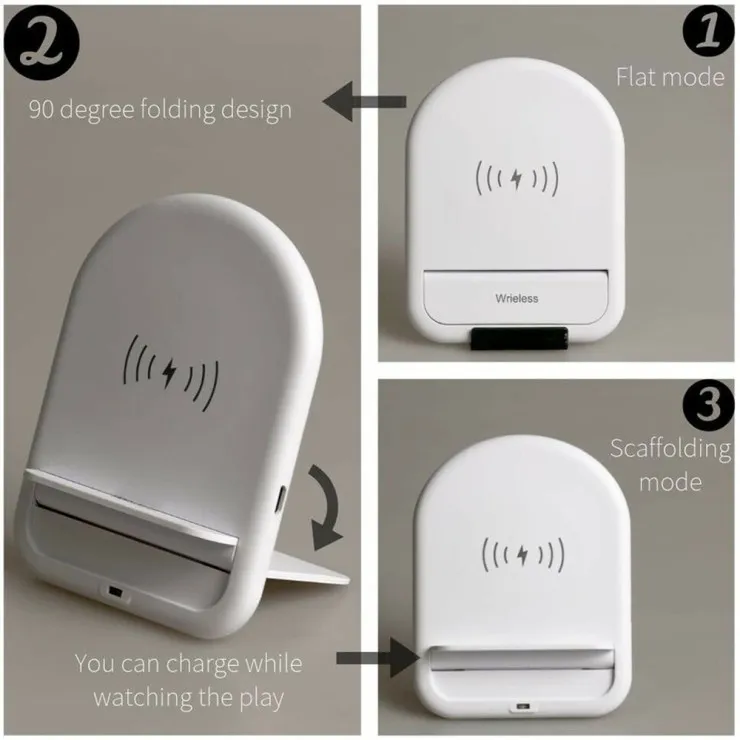 | Compatible Model | Universal | Colour | White | Features | Adjustable Angle, Wireless Charging, Fast Charger Adapter, Ultra-Slim, Portable, Scaffolding Mode, 90° Folding Design, Flat Mode, Folded Stand, Enjoy The Fun Of Fast Charger | Package Includes | 1x | Type | Charging Dock | Material | ABS Plastic | Connectivity | Wireless | Mounting Location | Desktop, Table |