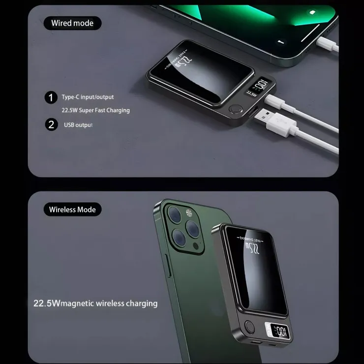 10000mAh Wireless Power Bank – USB-C Fast Charger for iPhone & Android